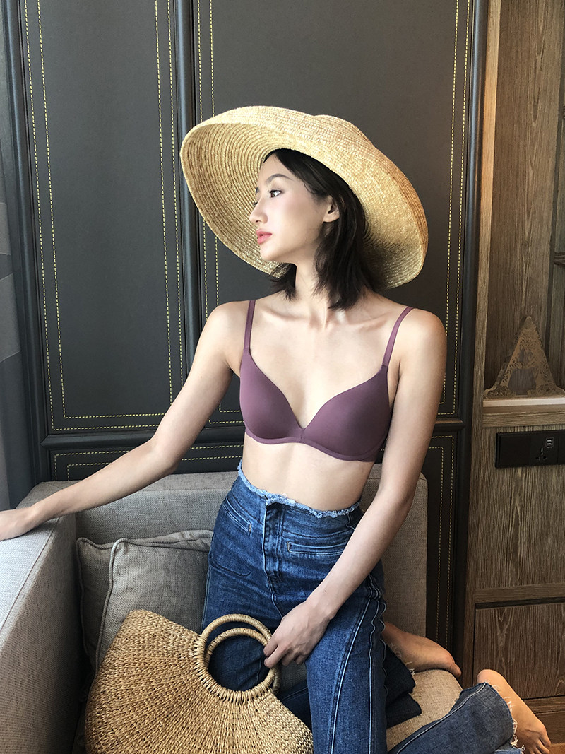 Japan traceless bra one piece of glossy surface light breathable gathering small bra commuting comfortable underwire-free underwear woman