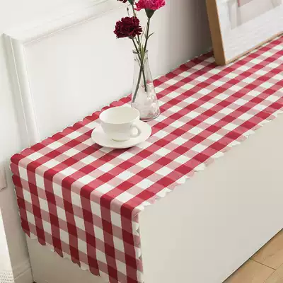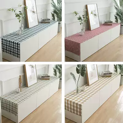 Plaid table flag cotton linen tea table TV cabinet long strip hipster Square small plaid cloth