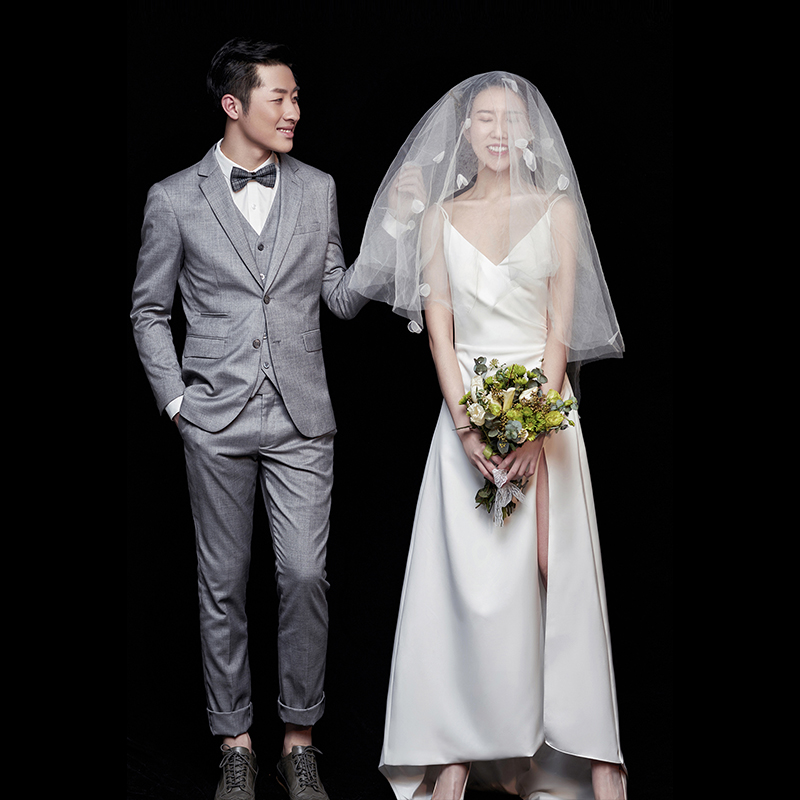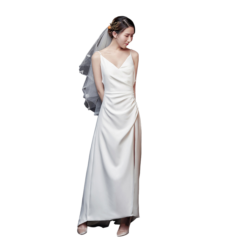 French Light Wedding Small Dress Brigade Line with Super Failure Satin Simple Satin Skin Retroit Heben Bride Out