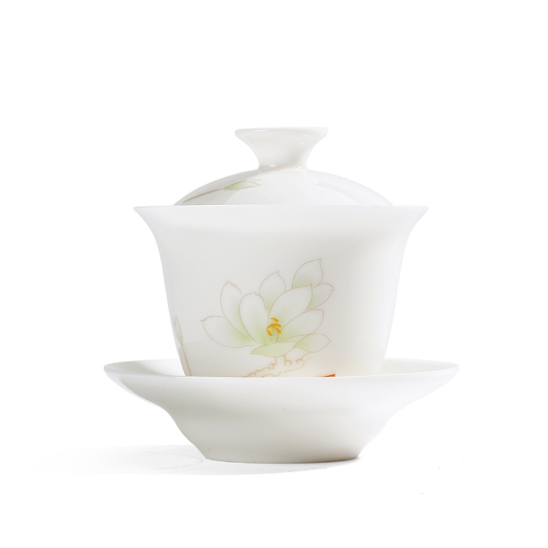 Heat Resistant Cover Bowl Tea Cup Kung Fu Tea Tea Set Group Ceramic Bubble Tea Bowl Large Number Domestic Dragon Springs Green Porcelain White Porcelain White Porcelain Triple Bowl
