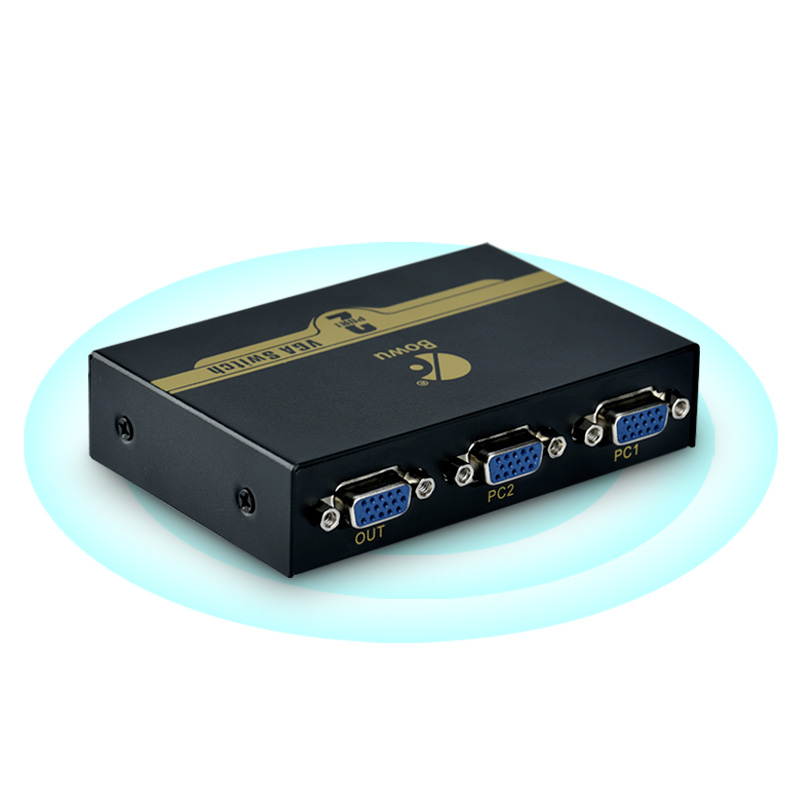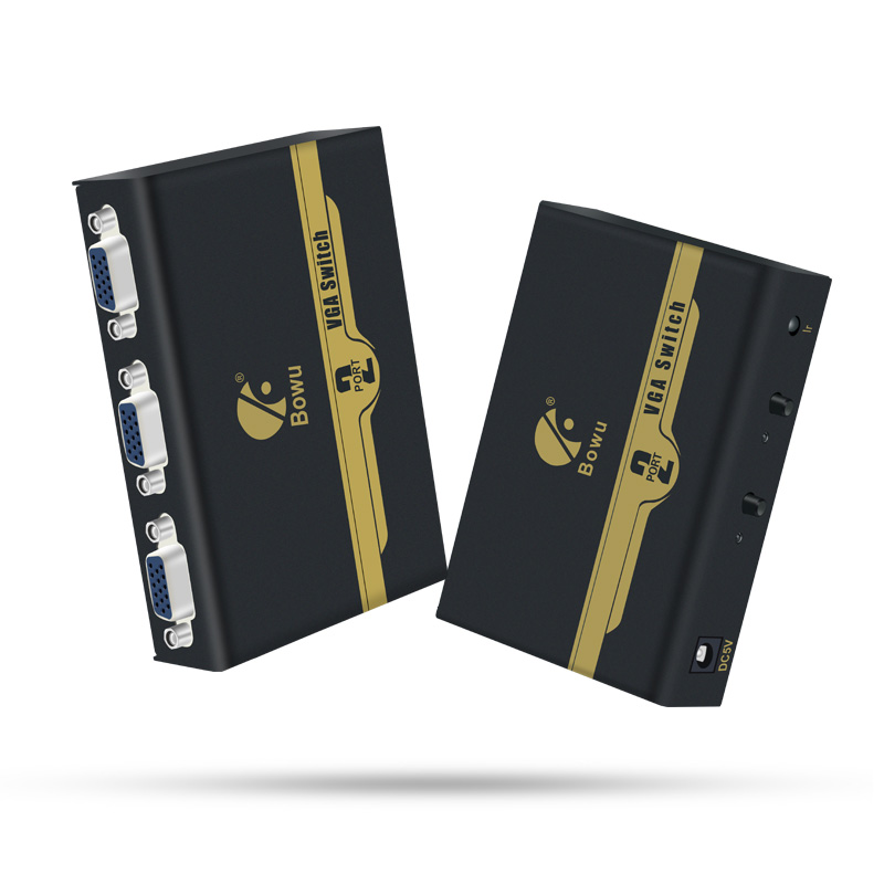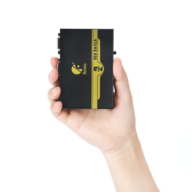 BOWU 2 port VGA switcher 2 in 1 out computer video monitor converter Sharer Two in One Belt remote control vga distributor 1 point 2 independent two-way switching distribution