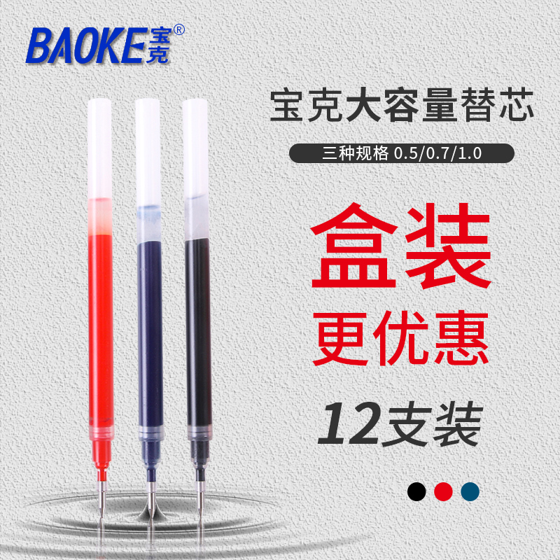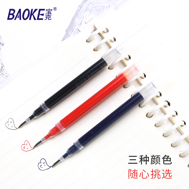Baoke gel pen large capacity replacement core 0 5mm bullet sign pen carbon thick character practice pen Office students teachers modify red pen doctor prescription blue and black refill 120 give 12 pens