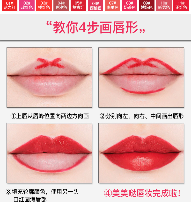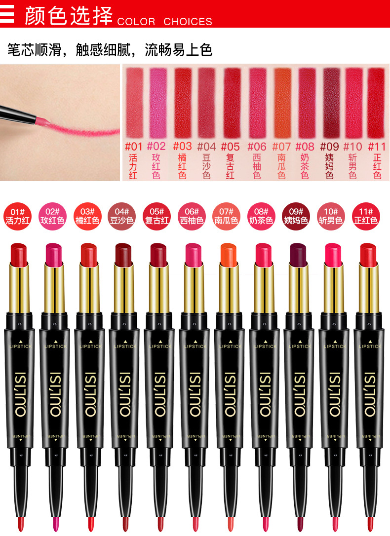 Double head lip line pen (01 #vitality red) double head lip line pen (02 # rose red) double head lip line pen (03# orange red) double head lip line pen (04 # bean sand color) double-head lip line