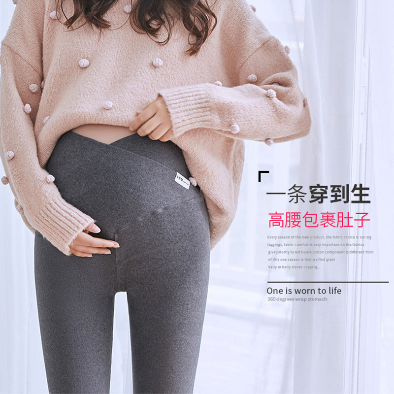 Spring Autumn Winter Style Pregnant Women Yoga Clothes Long Pants Plus Suede Thickening Pregnancy Plus Suede Inner Lap Pants Pure Cotton Nursery Great Size Fitness