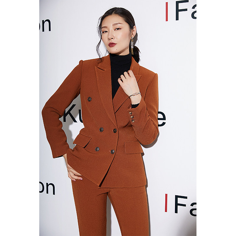High-end light luxury woolen suit suit suit women caramel suit suit set two-piece chic autumn fashion casual