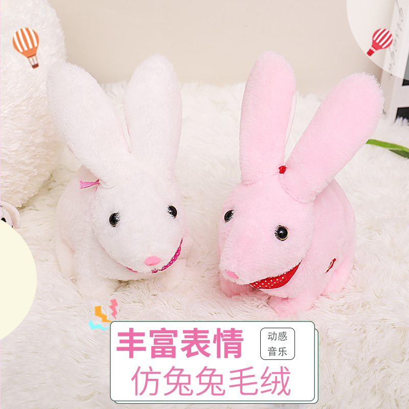 Rabbit plush doll simulation electric cute doll doll trumpet moving little white rabbit girl birthday gift