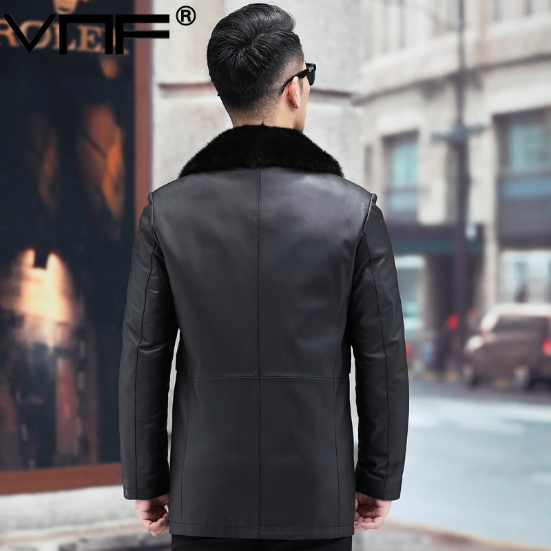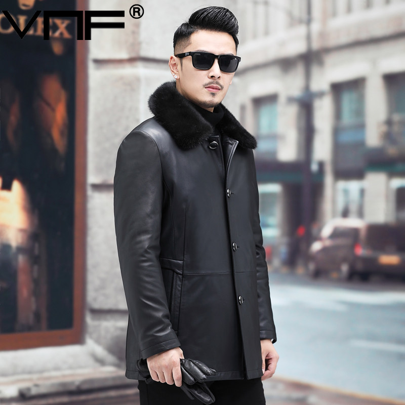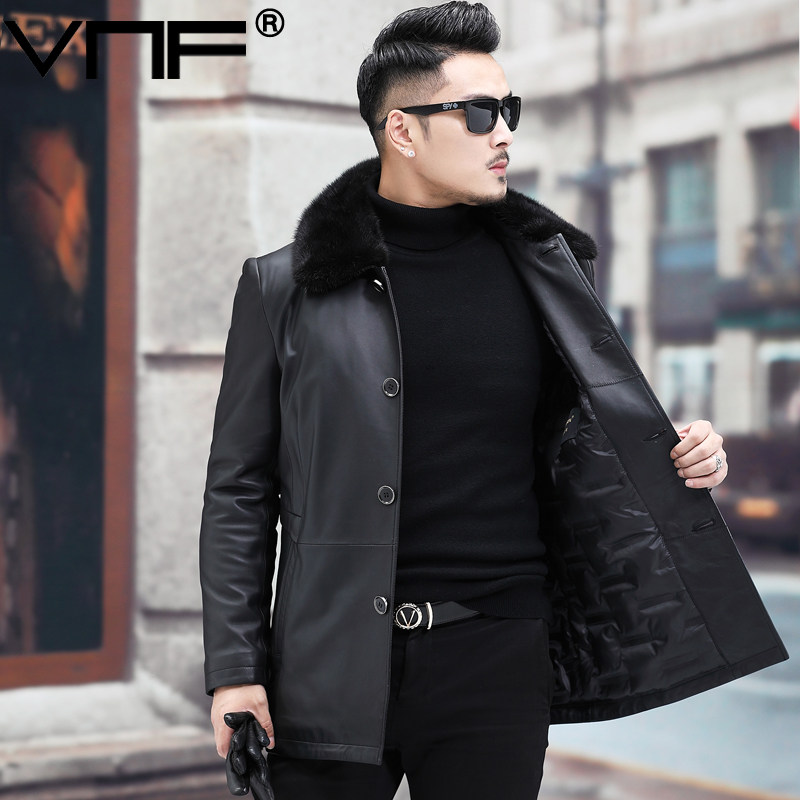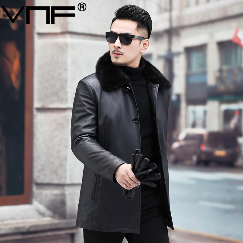 Autumn Winter Hainen genuine leather down jacket for men's water mink, long version of sheep leather middle-aged leather jacket warm jacket