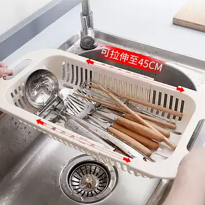 Pool telescopic shelf Drain basket filter sink punch-free dishwashing rag rack Kitchen household pull-out storage shelf