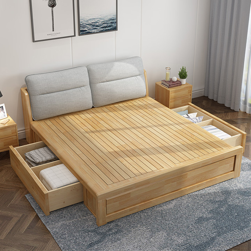 Nordic solid wood bed modern minimalist about 1 8 m double bed 1 5m small family type master bedroom with soft close to containing bed with high box bed
