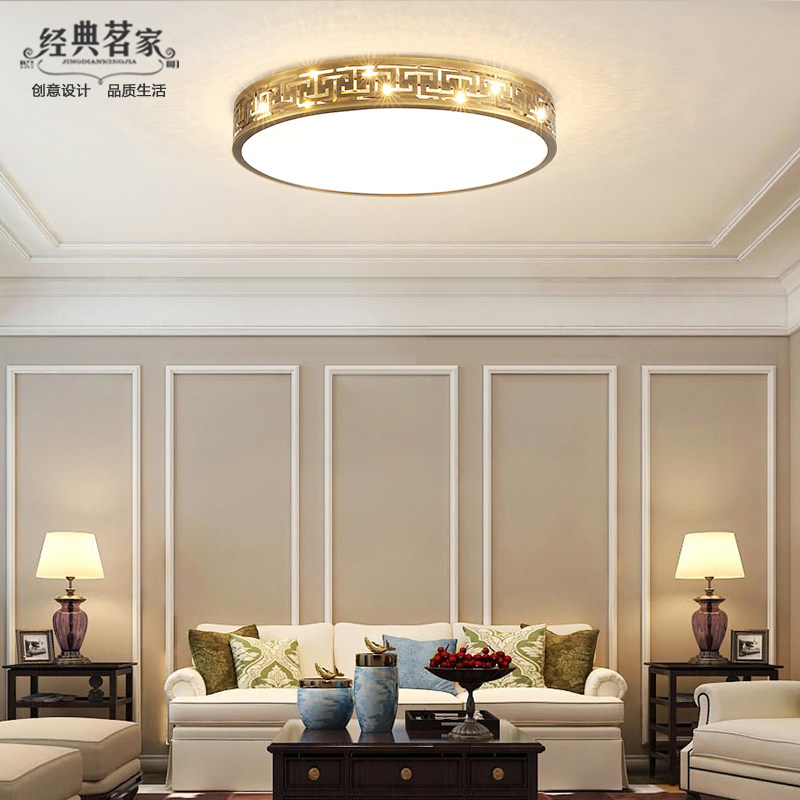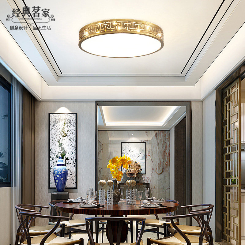 Total copper New Chinese round bedroom lamp creative cozy romantic minimalist modern main room suction light pure copper lamp