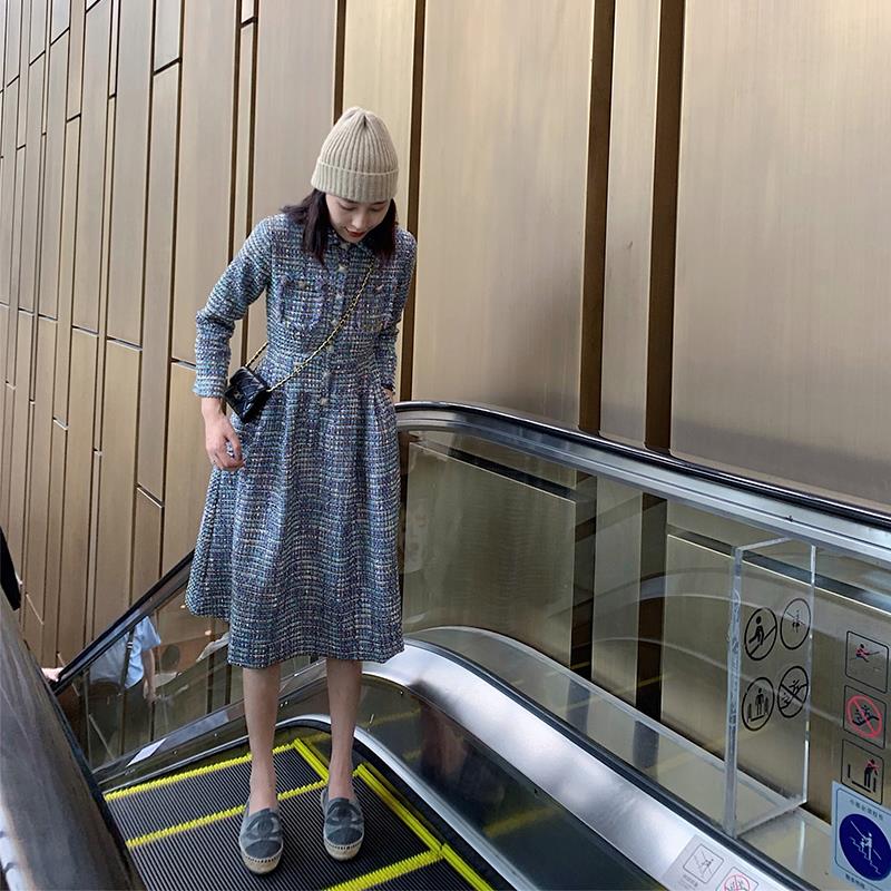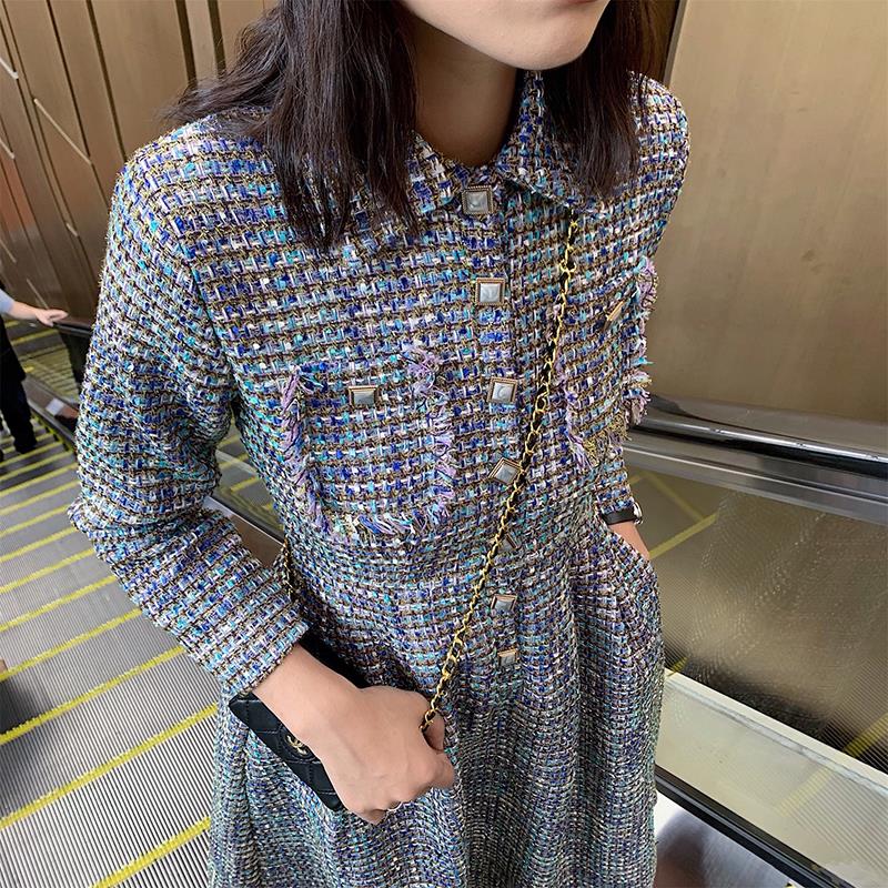 South Korea Special Cabinet 2022 Spring Autumn New Temperament Rough Flowers Cashew cashies slim fit Long sleeves Long version of famous hime dress