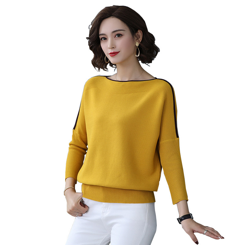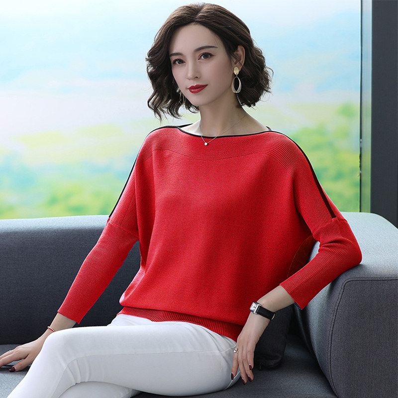 Word shoulder ice silk sweater women's thin section spring 2021 new loose Western style bat shirt short base shirt