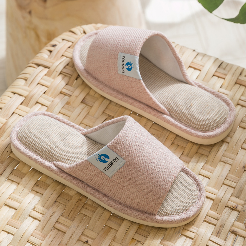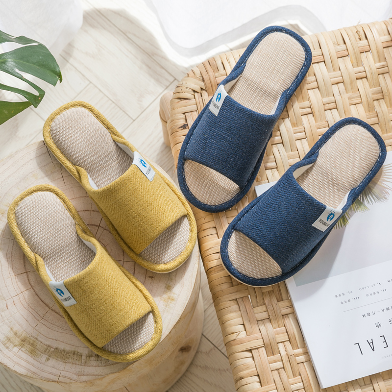 Mu Hai Ju four seasons home slippers Japanese couple home linen fabric autumn and winter warm indoor floor non-slip
