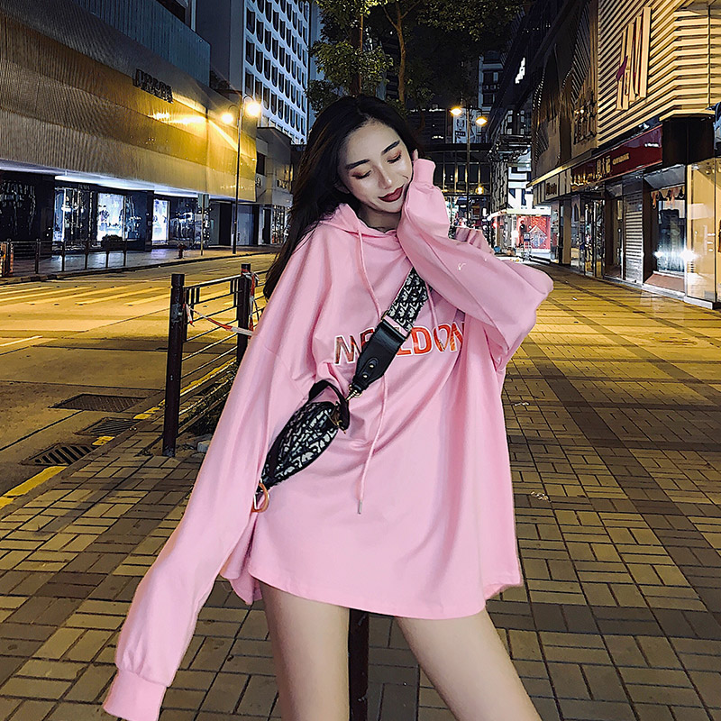 oversize sweatshirt woman 2022 autumn winter plus velvet bf wind loose 100 lap medium long printed long sleeves with cap blouses-Taobao