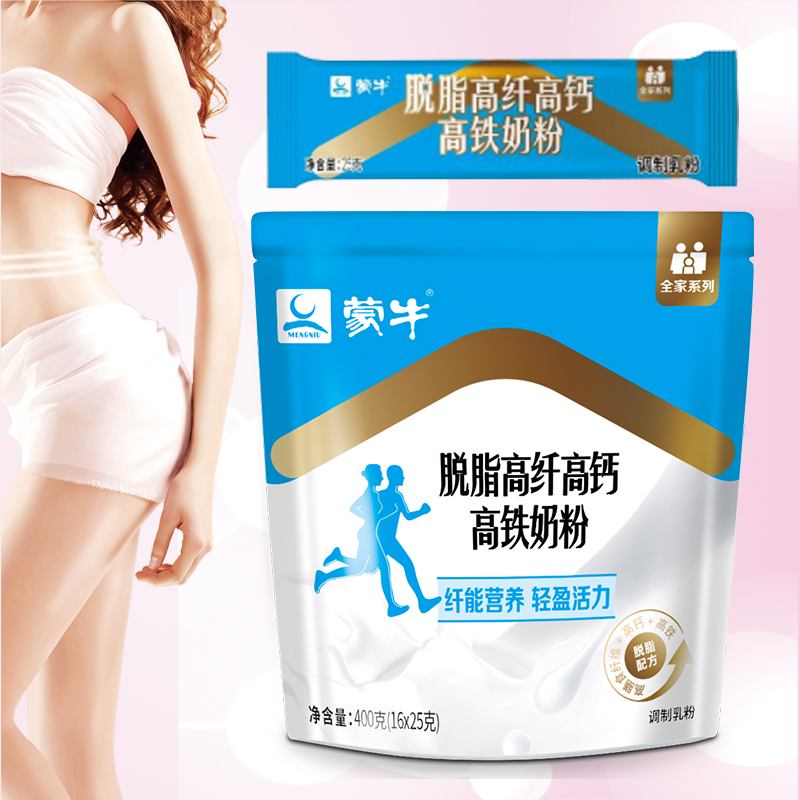 Ms. Mengniu Milk Powder Skim High Fiber High calcium High Speed Rail Nutrition 400g * 2 bags Breakfast Milk Powder University Students Sprint-Taobao