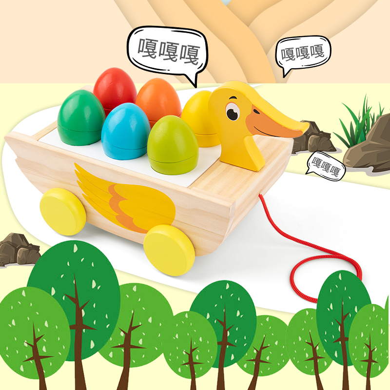 Children's Animal Drag Toddler Toy Baby 1-2-3 Years Old Hand Pull Line Duck Twist Egg Building Block Truck