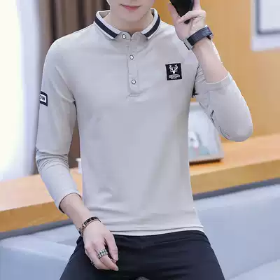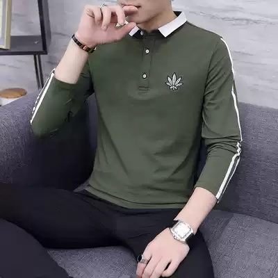 Men's Earth long sleeve T-shirt 2019 spring and autumn lapel polo shirt men Korean trend slim base T-shirt men's tide card