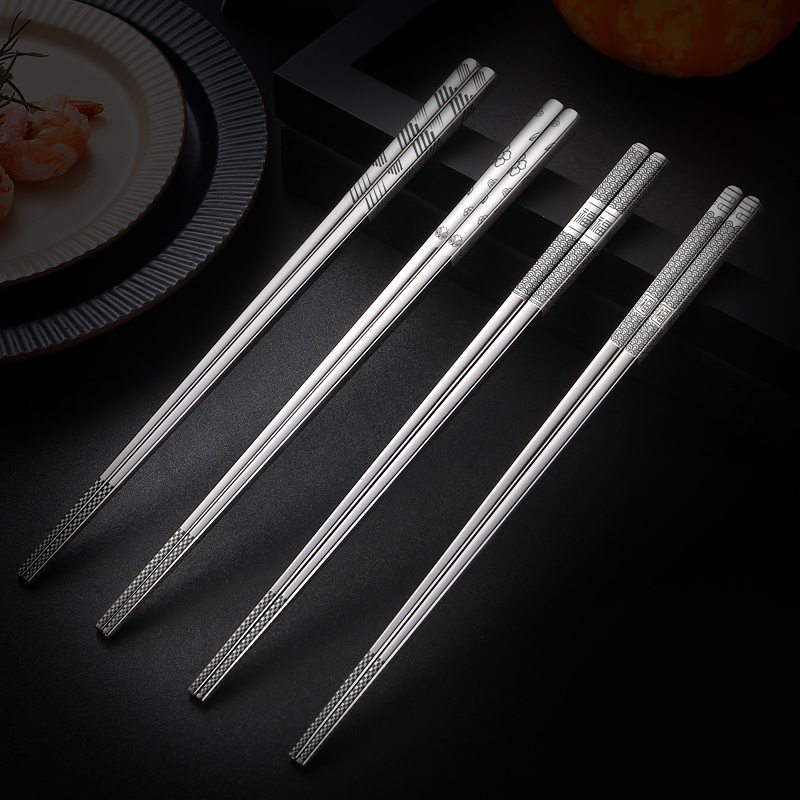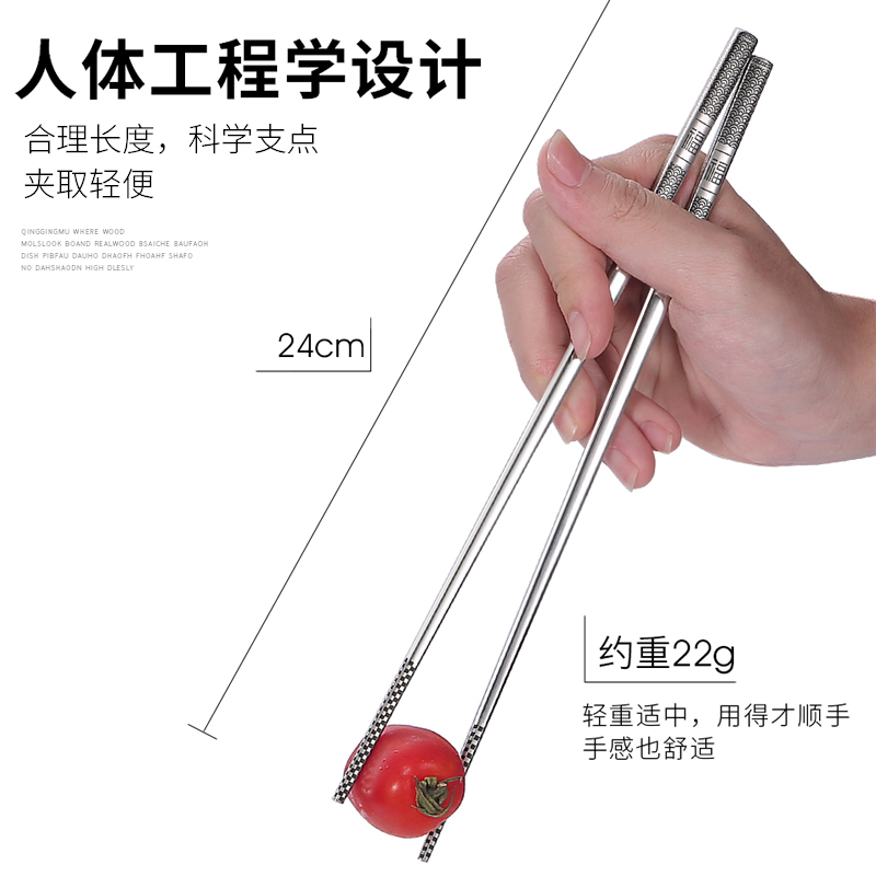 304 stainless steel chopsticks Home anti-slip and mildew iron silver metal chopstick day square upscale 10 double suit