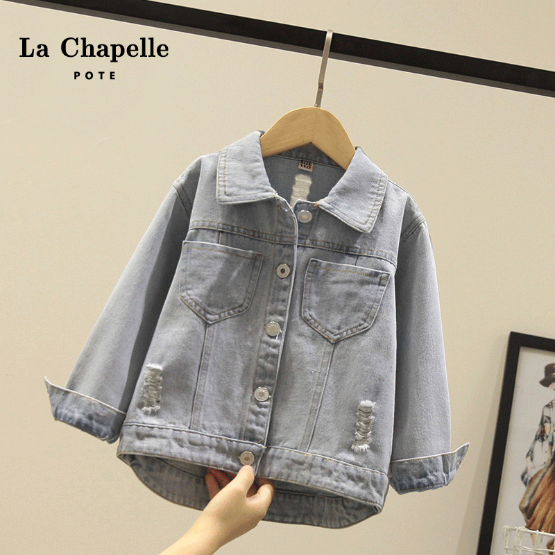 Rashabel Boy Clothing Children's Denim 2022 Spring Autumn Season New Girl Jacket Korean version of the Spring Dress Foreign Pie