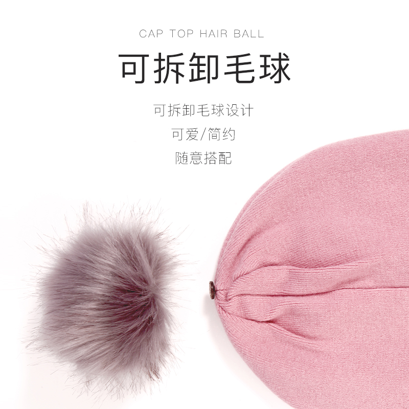 Moon hat Moon shoes full 2 pieces enjoy 25% off Antibacterial★Thin section★Warm powder Antibacterial★Thin section★Elegant gray autumn and winter-hair ball knitting section-Kamite powder autumn and winter-hair ball knitting section-