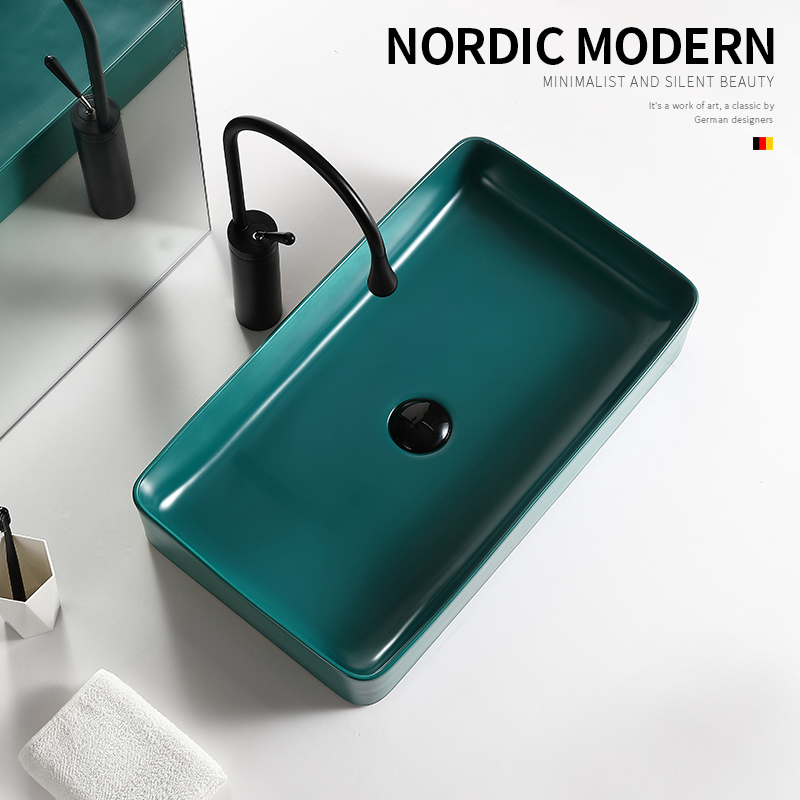 Table Basin Benwww Europeans Creative Mate Ink Green Hotel Ceramic Washing Basin Square Household Toilet Light Luxury Basin