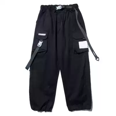 Xiaobingguo autumn belt overalls men's straight loose hip hop Tide brand foot function sports pants ins tide