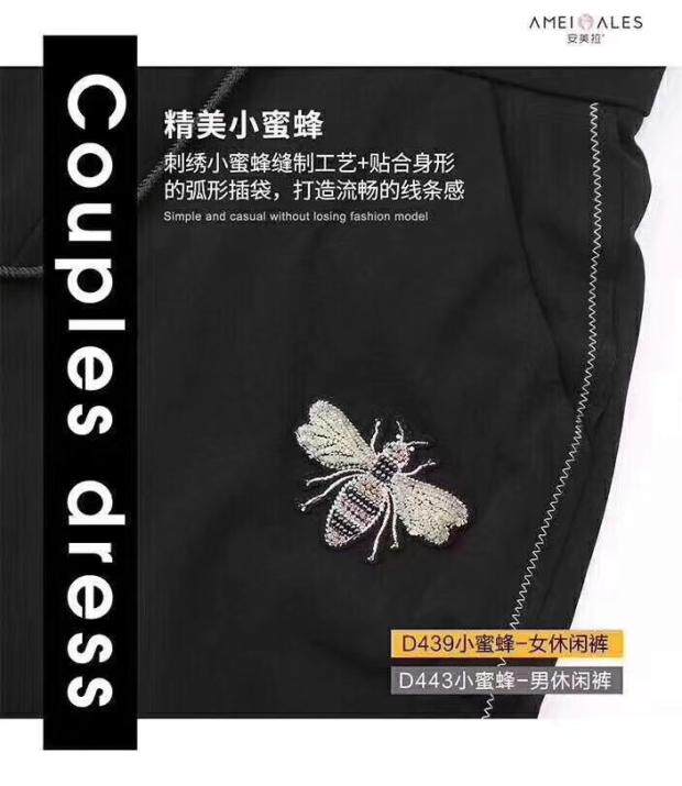 Ammera small bee sports casual pants male and female lovers pants elastic tightness lacing spring autumn outside wearing 100 hitch