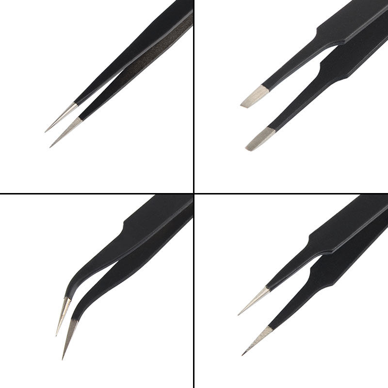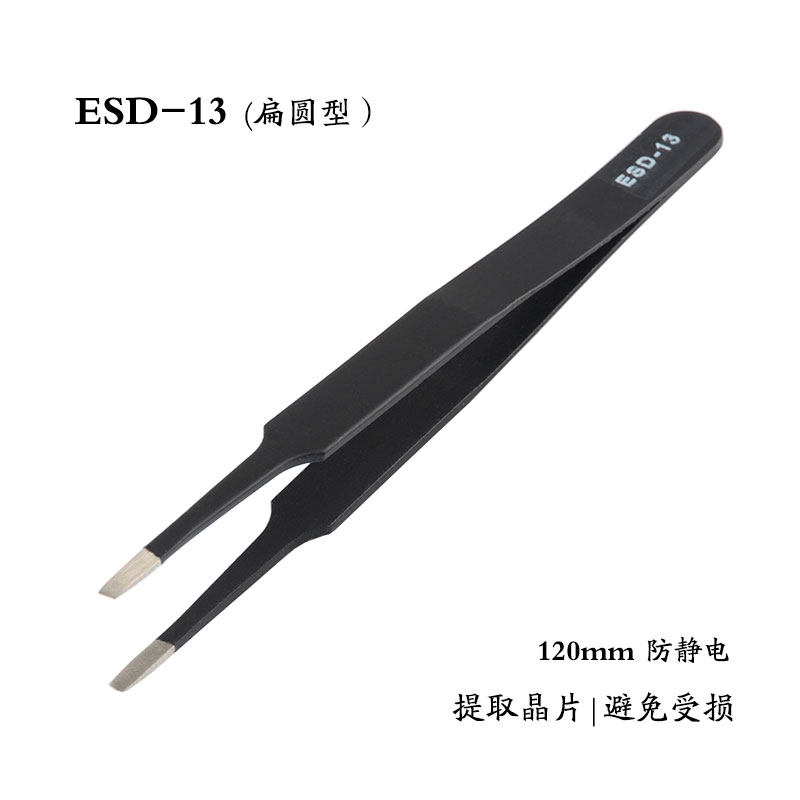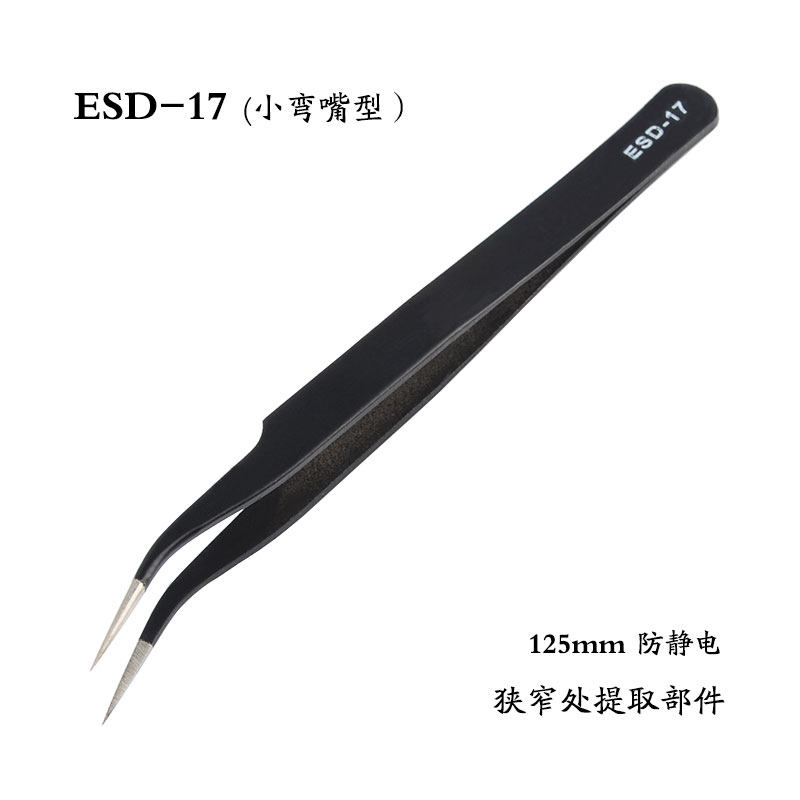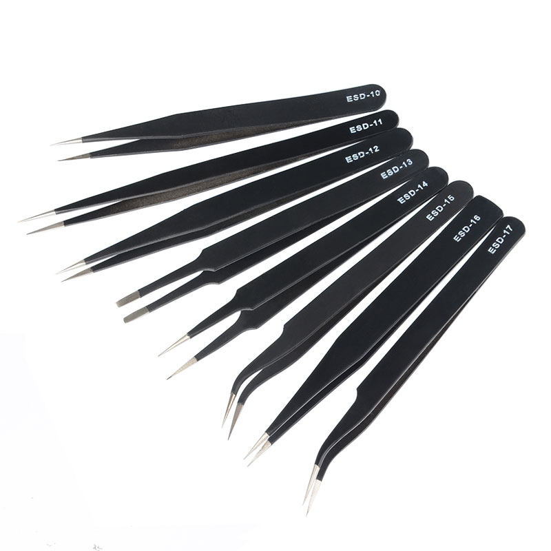 ESD tweezers high fine point mouth straight round head bend flat head anti-static stainless steel tweezers electronic maintenance clamp