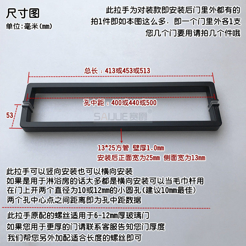 304 stainless steel shower room handle bathroom dressing room push-pull glass door handle dumb black titanium alloy color
