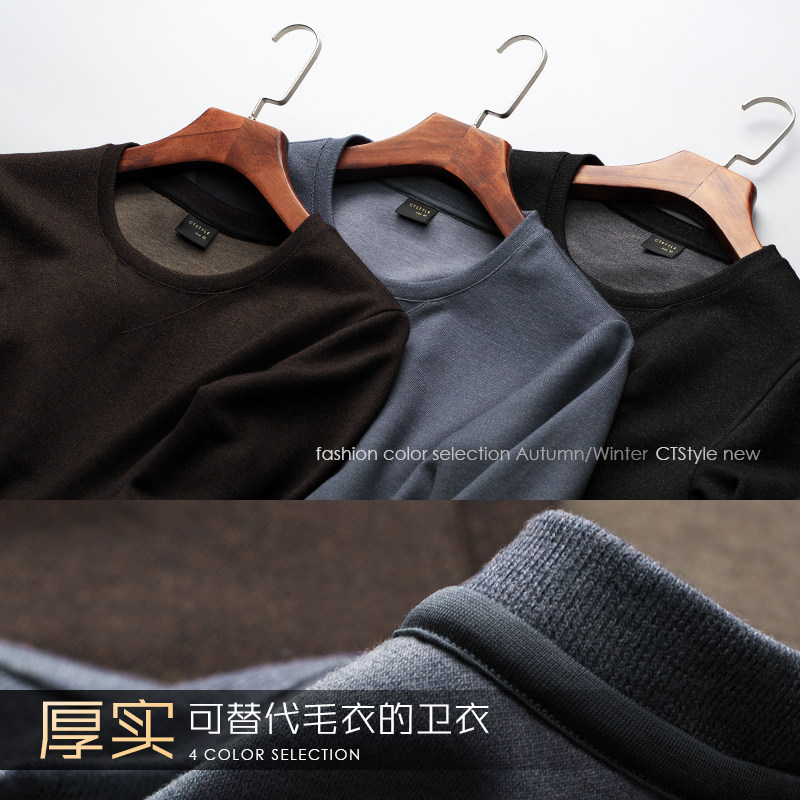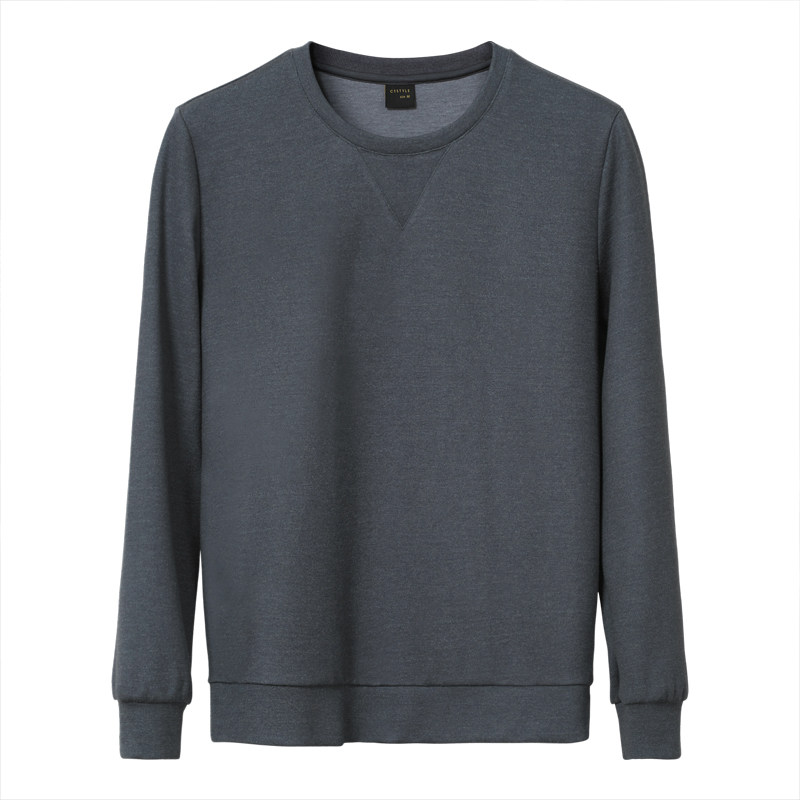 Spring and autumn men's round neck thick cotton T business casual men's long-sleeved inner jacket loose autumn top 2021 new