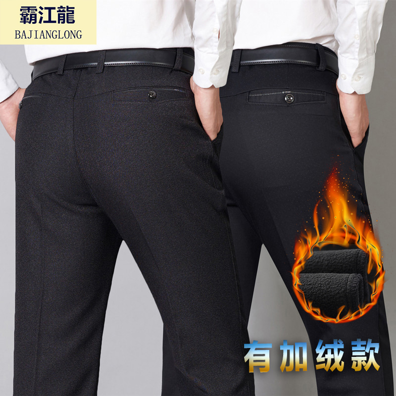 Autumn and winter in aged thick and gush casual pants men's Western pants loose straight cylinder elastic male pants daddy long pants