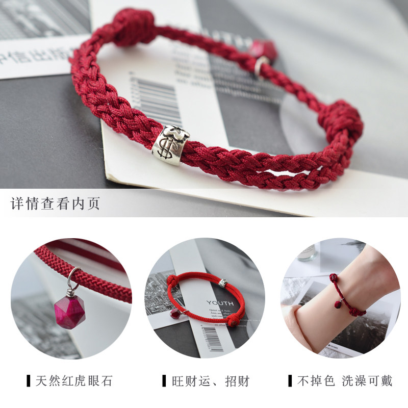 Red tiger eye stone bracelet female summer red rope simple student Forest Department lucky transfer beads Sterling silver natural crystal Year of life