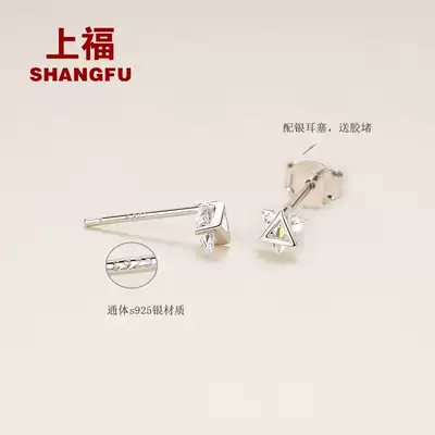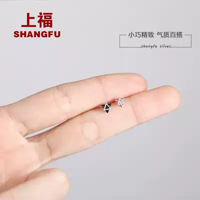 Ear needle mini sterling silver small ear bone nail simple small black triangle color zircon small earlobe suitable