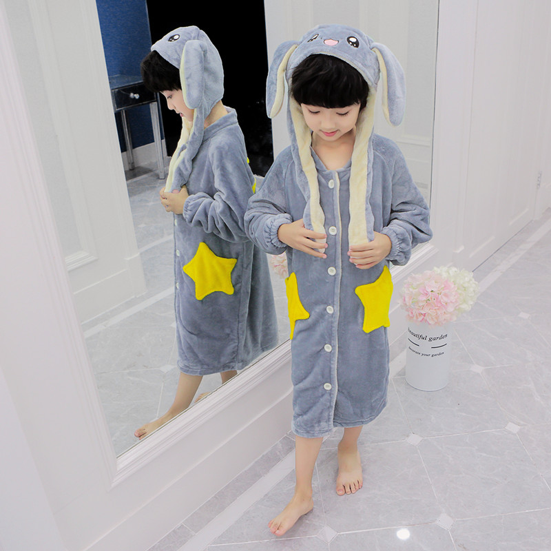 Child Sleepwear Flannel Girl Bathrobe Coral Suede Coral Suede Baby Thickening Boy Cartoon Pyjamas Autumn Winter