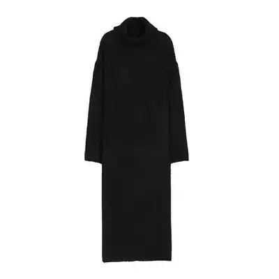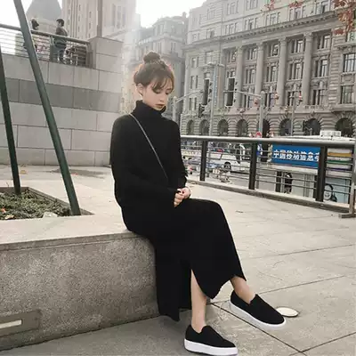 Lazy wind sweater women's 2021 new autumn and winter pullover loose high collar bottom over knee knitted dress