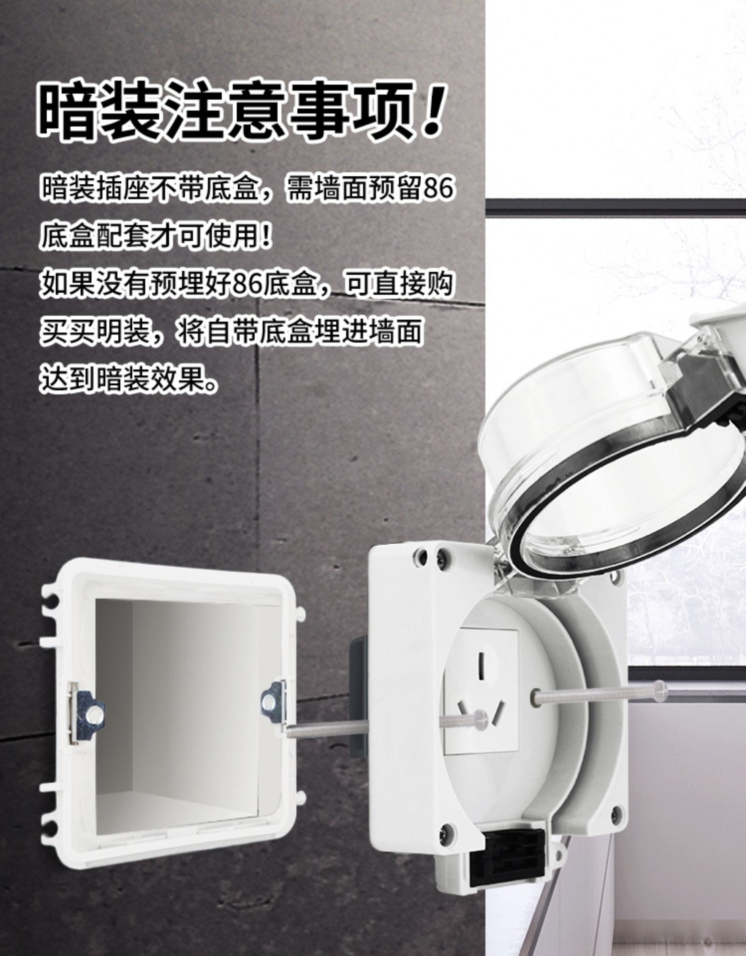 Outdoor waterproof socket rainproof high cover transparent USB switch socket 10-16A chiaroscuro full cover waterproof box