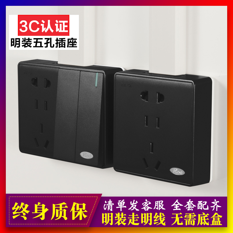 Min Fitting Socket With Bottom Box Integrated Five Holes Wall Clear Wire Box Black Socket Home Porous 23 Inserts Slim Fit