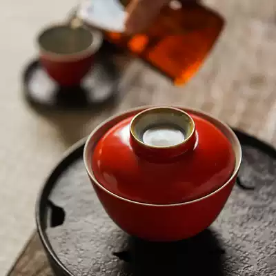 Self-sacrificing handmade non-commissioned cover bowl Teacup Tea bowl Sancai white porcelain coarse pottery Single cover bowl Tea set Tea matte