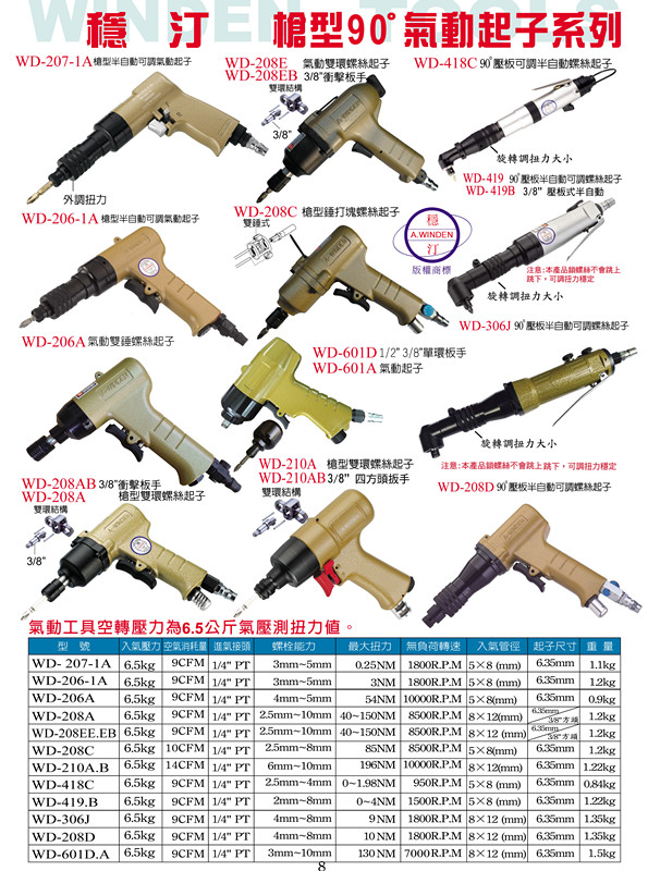 Imported Steady pneumatic screwdriver pressure plate semi-automatic adjustable screw driver WD-208D gas batch wind gun