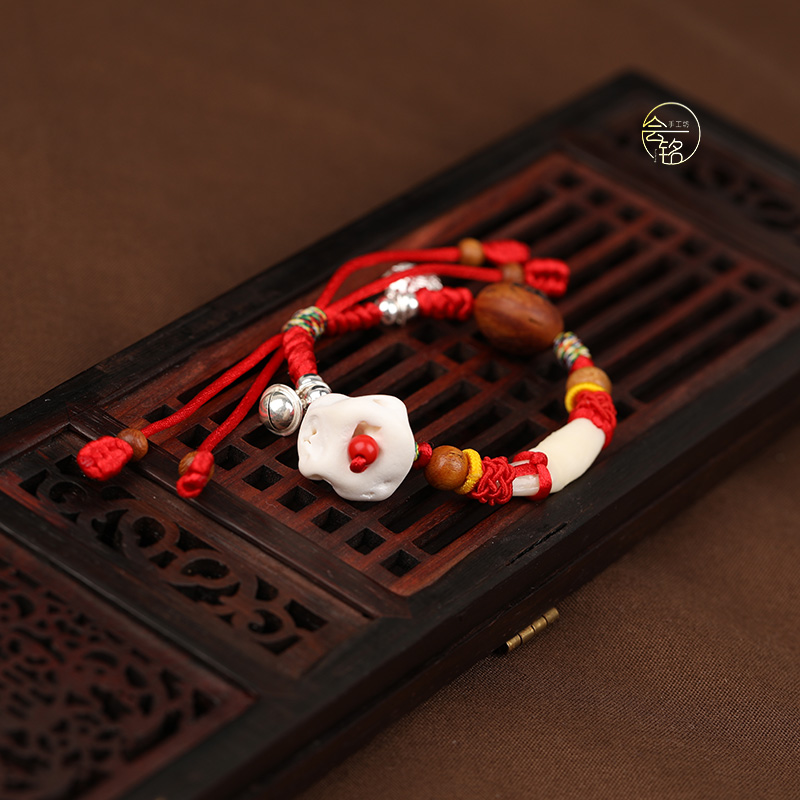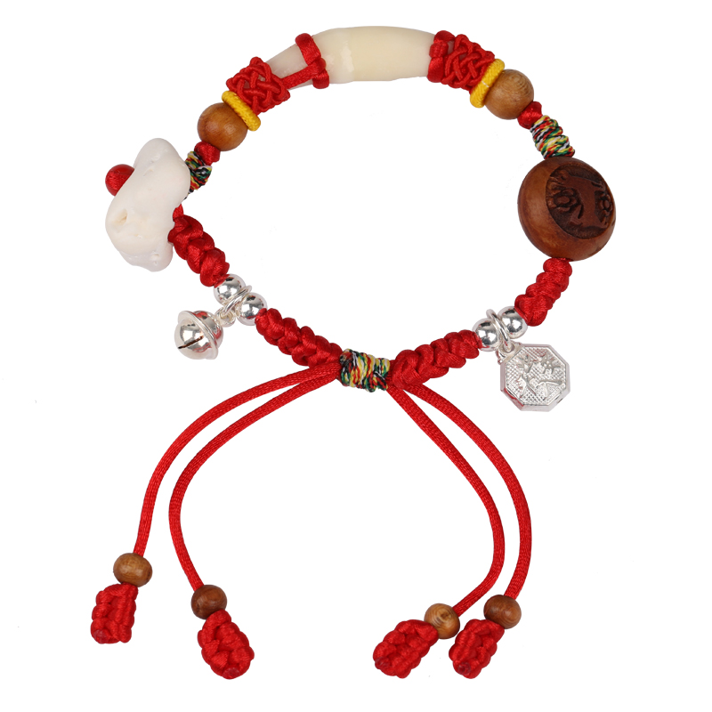 Ancient style evil dog teeth Peach core Zodiac Baby Baby red rope bracelet Men and women original red hand rope body protection