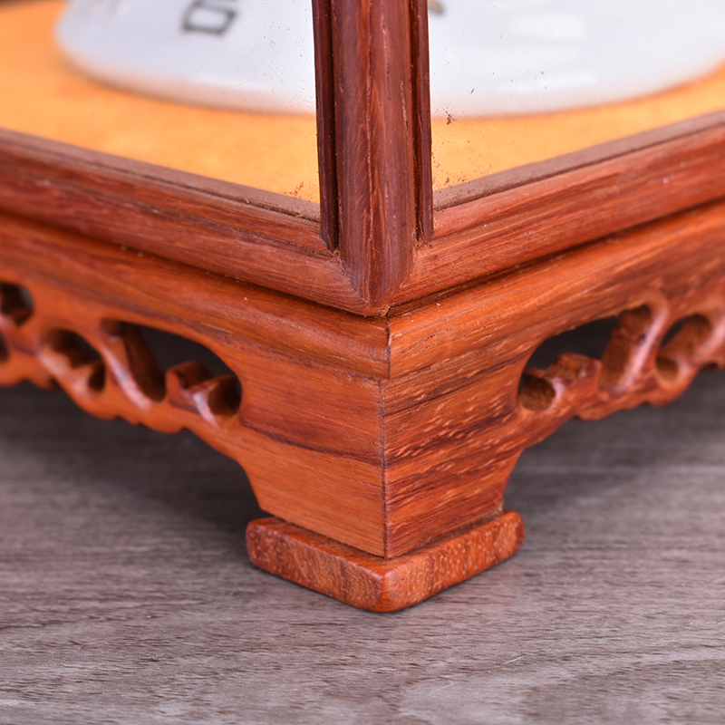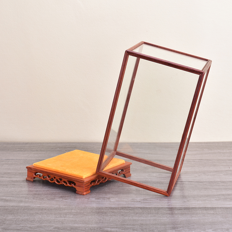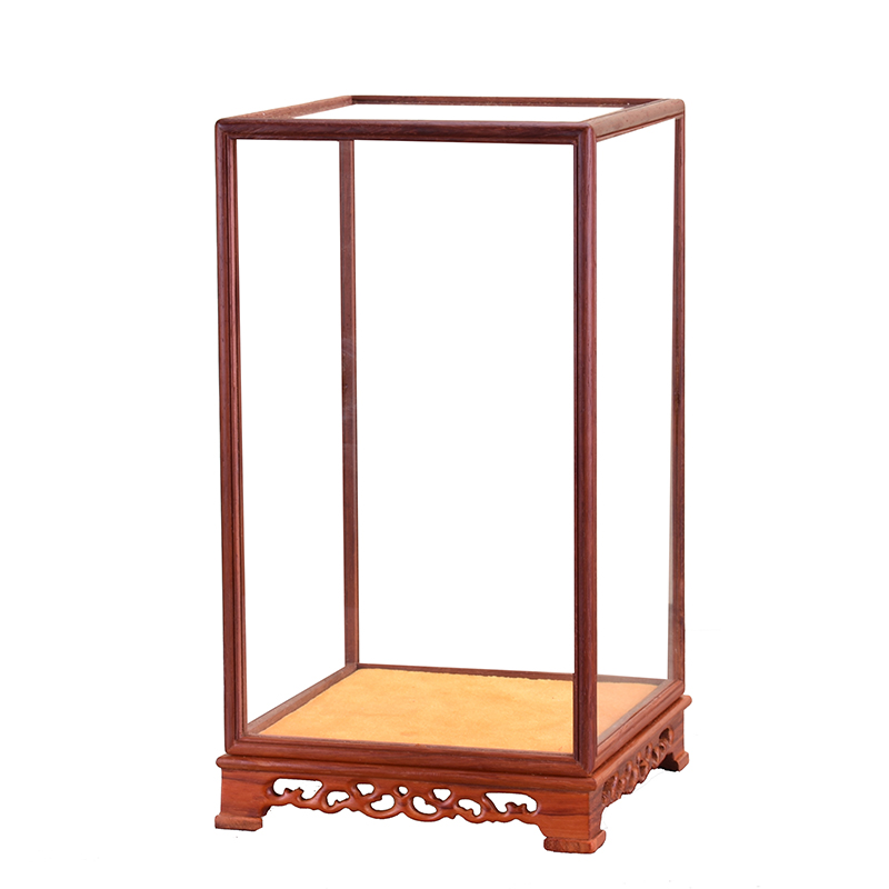 Red Wood Carving Craft Gift Swaying decorated glass cover Buddha Antique Display Dust Cover Solid Wood Glass Box Buddha Niche Base