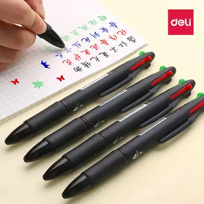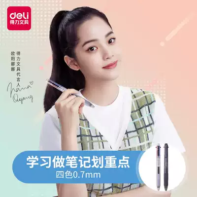 Delei new multi-color ballpoint pen four-color pen press type press type Pen press type pen 0 7 blue black Red 4 color oil pen multi-function in one note drawing key creative student supplies 2020