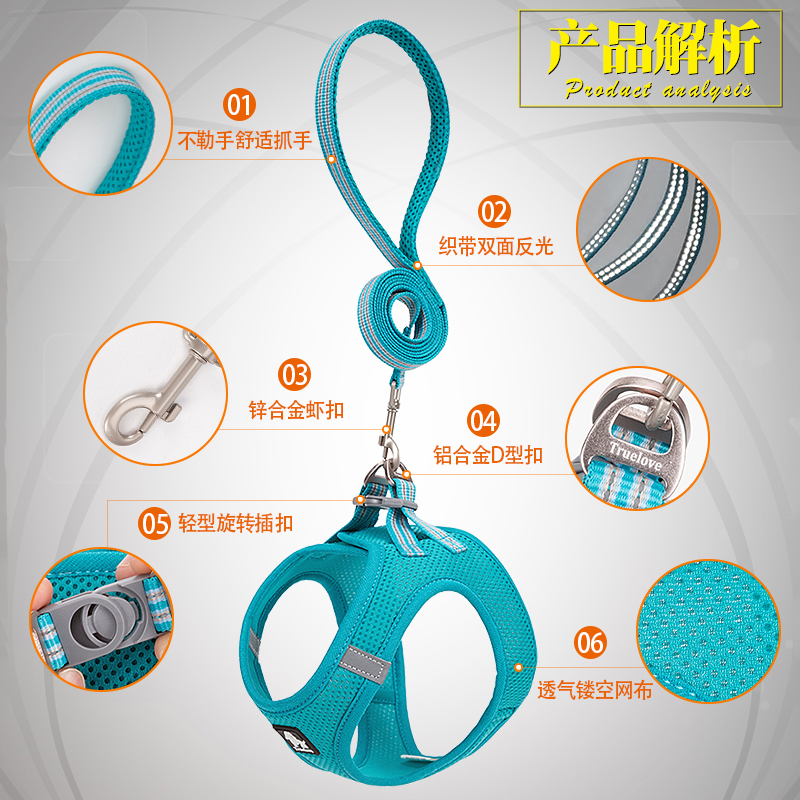TRUELOVE dog traction rope small dog rope chain walking dog rope vest type teddy pet chest holding baby bag