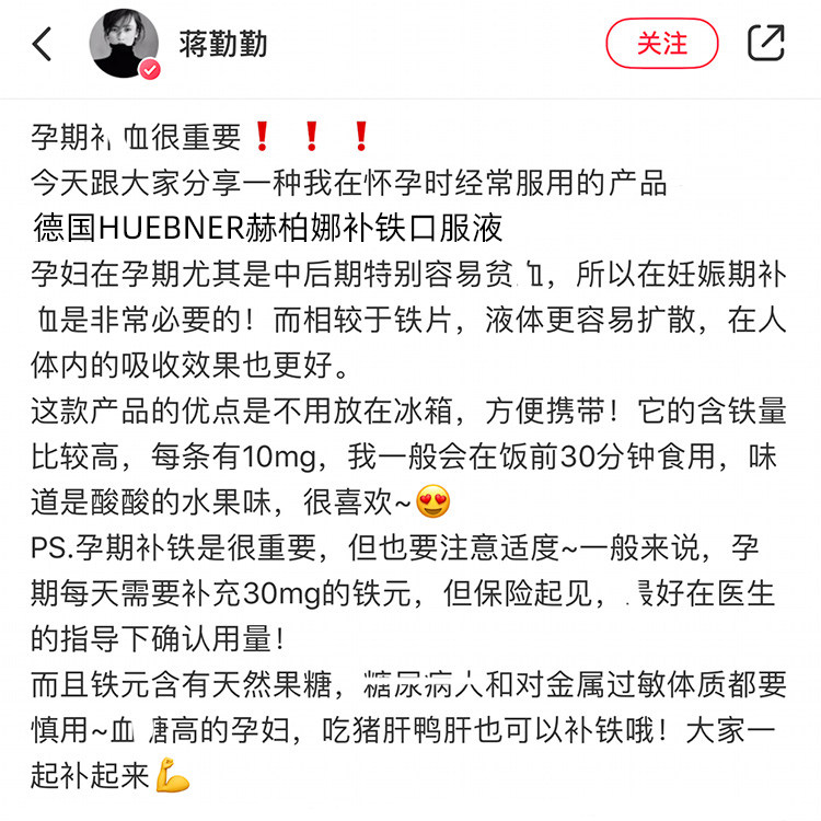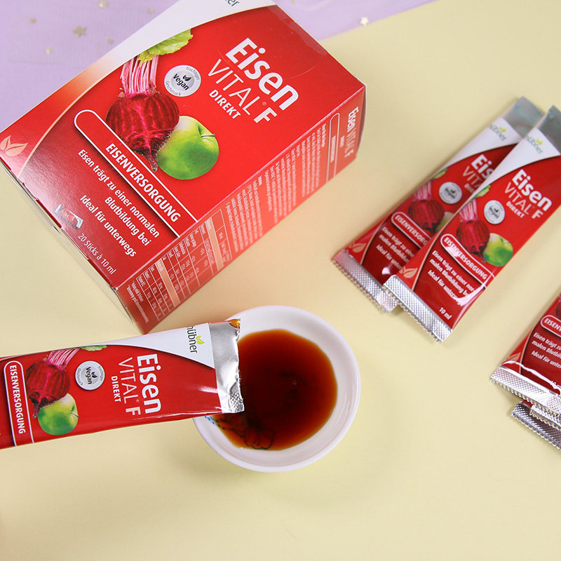 German imports Huebner Hao Berna red iron supplement iron oral fluid element Eisen adult pregnant woman portable 20 strips
