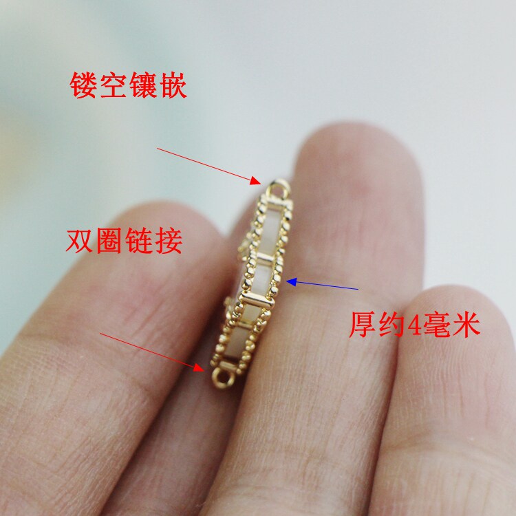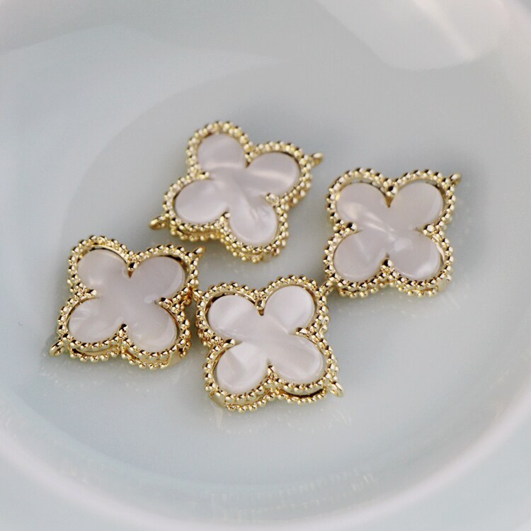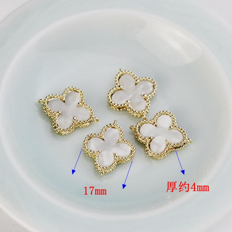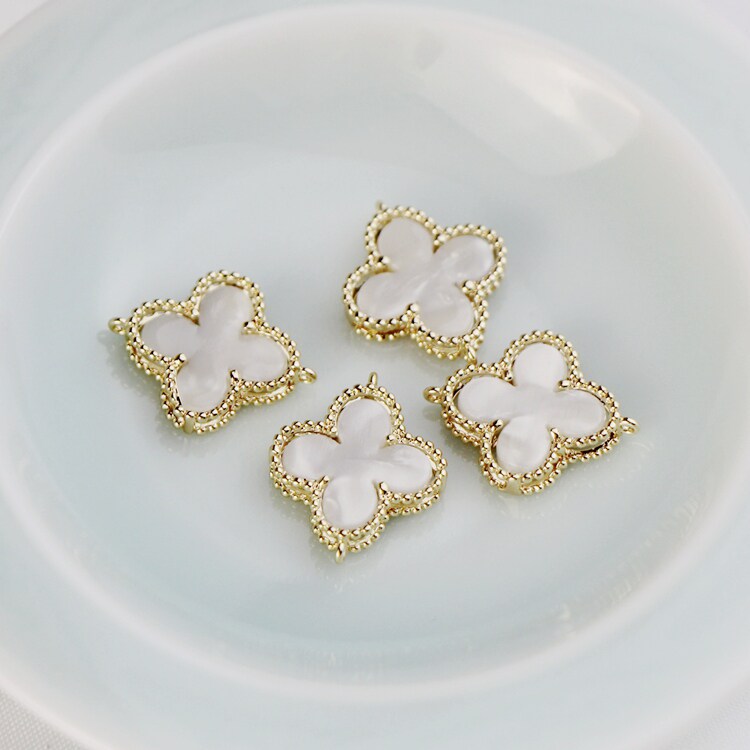 Pure copper plated 14K gold hollowed-out inlaid white butterfly fritillary bay four leaf grass double ring super-connected accessory diy hand-made earrings