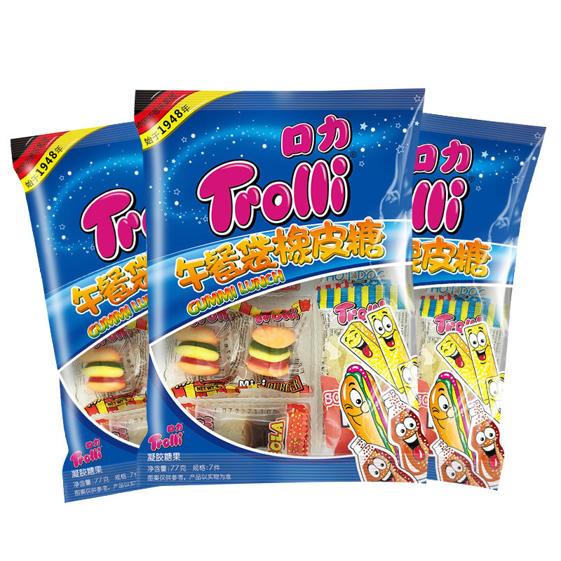 Lunch bag Gummy Germany Trolli mouth force fun Q Gummy Childhood snacks Juice candy Cute candy 77g