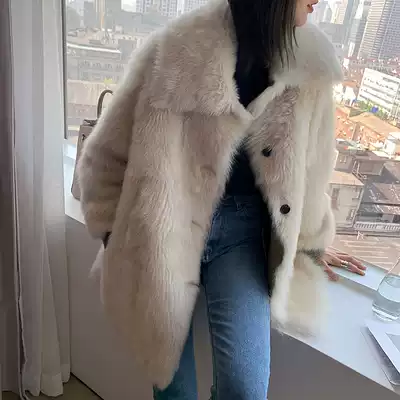 younifur imported Tuscan fur one female white thin lamb fur coat medium long version
