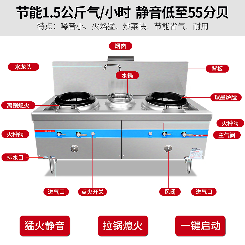 Fire stove commercial energy-saving gas stove double stove hotel with fan silent Natural Gas Gas stove desktop