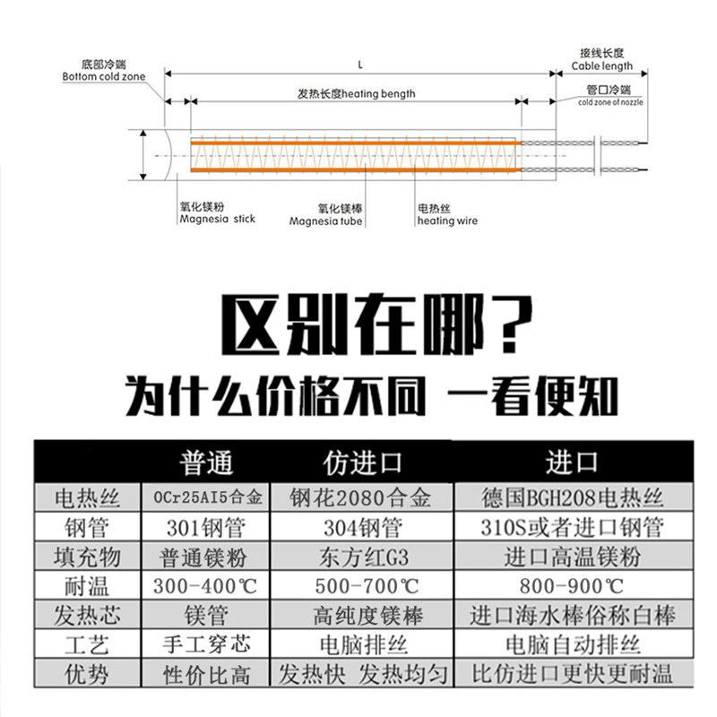 Viarro mold single head heating tube electric heating tube heating tube electric heating rod 220V380V