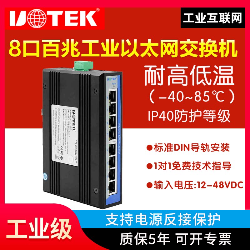 Industrial Class 8 openings 100 trillion Switch rail style Mount 8 openings 100 trillion B Ethernet Switch Non-webmaster Type All 100 trillion Electric port wall-mounted installation Single power supply Utai UT-60-D8T